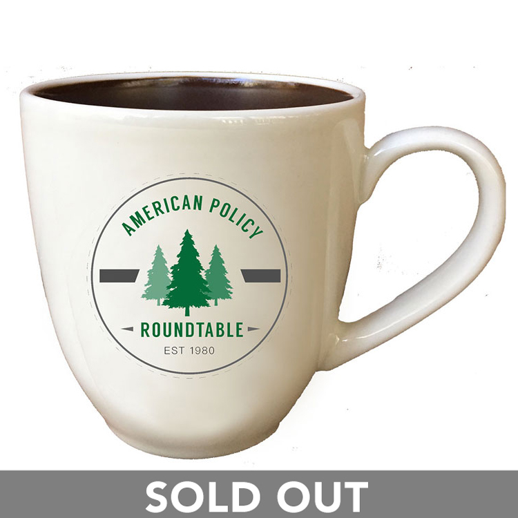Custom coffee mug displaying the American Policy Roundtable logo
